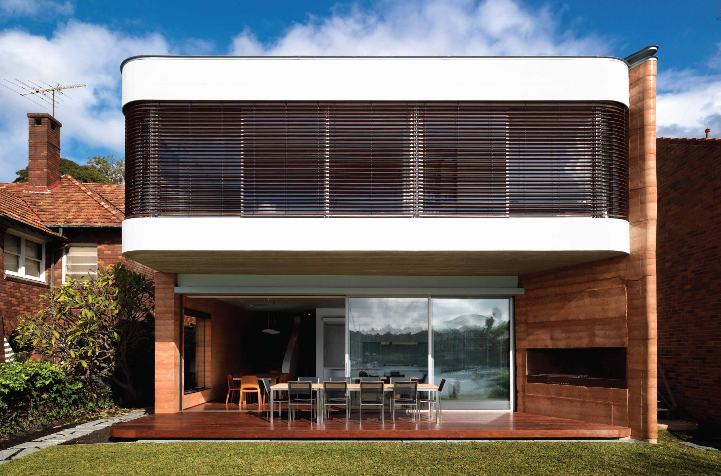 A series of rammed earth blades rising up to 6.5m high form the external elevations of the house and double as feature walls of the interior, where the earthy red tones marry with recycled red ironbark timber flooring to create a natural and warm ambience throughout the residence.